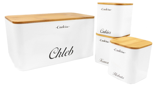 Funkcjonalny zestaw składający się z chlebaka oraz 3 niezależnych pojemników. Pojemnik przeznaczone są do przechowywania kawy, herbaty oraz cukru. Wygodne oraz szczelne pokrywki zabezpieczają produkty przed wysychaniem oraz pleśnią. Bambusowe pokrywki mogą posłużyć również jako deski do krojenia.