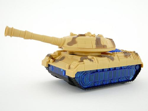 Czołg mknie po dywanie, migocząc światłem i wydając dźwięki. Każda zabawa staje się emocjonującą bitwą.