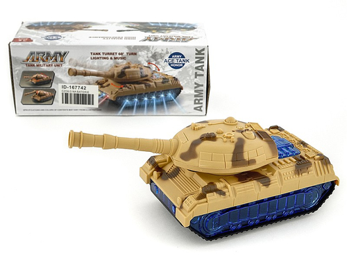 Czołg na baterie, światło, dźwięk; 23,5x9x9 cm