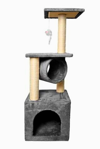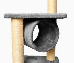 Piętra drapaka dla kota wyłożone są wyjątkowo miękkim futerkiem, który gwarantuje komfortowy wypoczynek z pomrukiwaniem w tle. Główną zaletą drzewka jest przytulny domek. Dodatkową opcją wypoczynku jest tuba umieszczona na 3 poziomie drapaczka. Kociak będzie mógł swobodnie odpocząć. 5 poziomów obserwacji zaspokajają kocią ciekawość. W przypadku nudy można ponadto zapolować na myszkę zamontowaną na gumce, która znajduje się na 4 piętrze drapaka – można ją łapać i atakować.