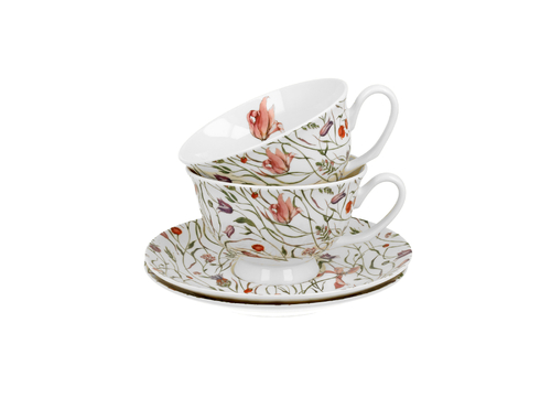 Komplet dwóch filiżanek royal ze spodkami FLOWER MEADOW wchodząca w skład serii Flowers Exclusive, wykonany z porcelany New Bone China, charakteryzującej się elegancką i naturalną kremowo – białą barwą z delikatnym połyskiem, a także wyjątkową wytrzymałością.