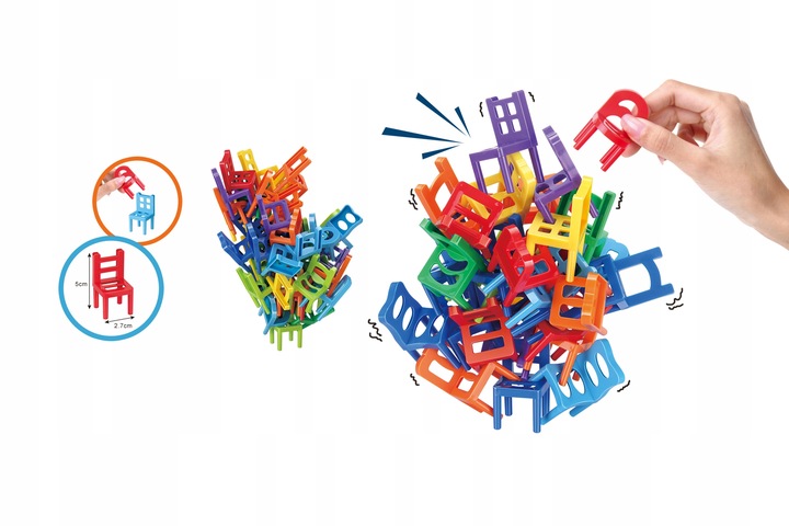 Gra zręcznościowa „Krzesełka” to świetna zabawa dla całej rodziny i przyjaciół. Polega na układaniu krzesełek jedno na drugim tak, aby konstrukcja się nie przewróciła. Ćwiczy cierpliwość, spostrzegawczość i zdolności manualne, a jednocześnie wywołuje mnóstwo śmiechu. Zapakowana w poręczny worek, idealnie nadaje się w podróż i na spotkania towarzyskie.