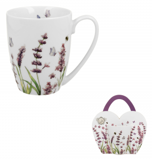 Linia zdobiona motywem malowanych gałązek lawendy, w intensywnie fioletowym kolorze, „wyrastających” z podstawy kubka.