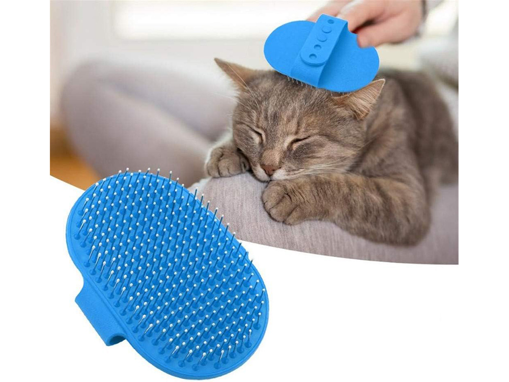 Szczotka posiada igły na końcu zakończone kulką aby podczas czesania nie ranić pupila i aby wyczesywanie było dla niego przyjemnością. Rączka została wykonana z gumy i nie wyślizguje się z dłoni. Jest regulowana za pomocą gumowego paska.