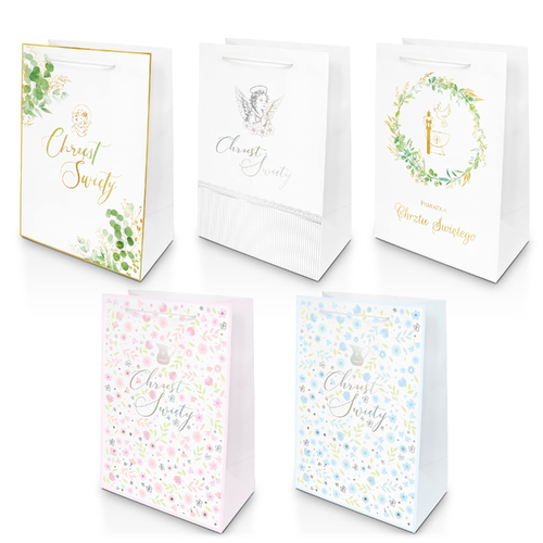 Zestaw dużych toreb prezentowych na Chrzest to połączenie elegancji, jakości i funkcjonalności. Wykonane z grubego, foliowanego papieru, zachwycają starannym wykończeniem i subtelnymi detalami – idealnie podkreślając wyjątkowy, uroczysty charakter Chrztu Świętego.