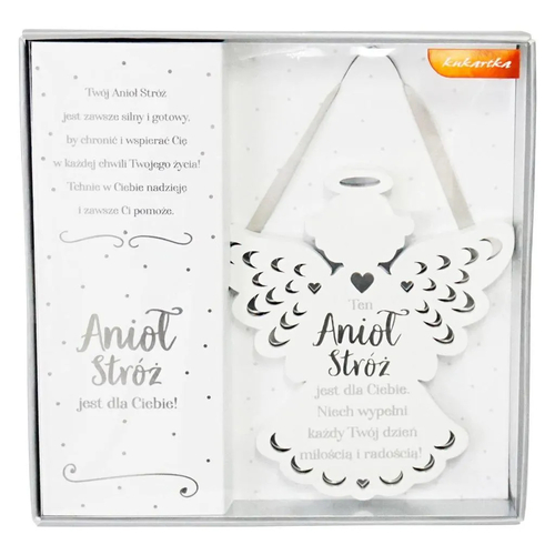 Zawieszka premium w formie Aniołka to niezapomniany pomysł na prezent. Wykonana z solidnej płyty MDF z wyżłobionymi lustrzanymi zdobieniami oraz napisem w formie krótkiej sentencji.